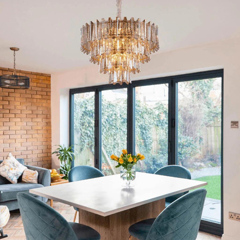 Imagine hosting guests under the golden glow of this exquisite chandelier. The warm light enhances every occasion, from intimate dinners to grand gatherings. Elevate your home with a piece that speaks of luxury and timeless beauty. Its radiant charm creates a welcoming ambiance, leaving a lasting impression on everyone who visits. Whether day or night, this chandelier transforms ordinary spaces into elegant retreats, making every moment feel special and refined. Its stunning design and soft illumination bring a sense of sophistication that complements both everyday living and festive celebrations.