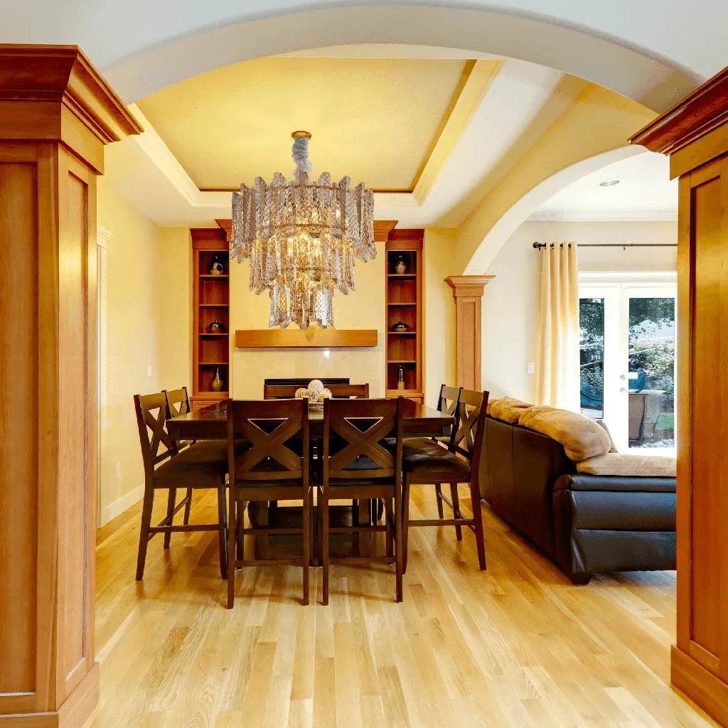 A Perfect Balance of Beauty & Functionality. With easy installation and a thoughtfully crafted design, this dining table chandelier is both practical and visually stunning. It complements both modern and traditional interiors, making it a versatile choice for any home. Its adjustable height feature allows you to customize the look to suit different spaces, whether over a dining table, in a living room, or in an entryway. The ambient light it casts creates a cozy, inviting atmosphere, while its elegant form becomes an eye-catching centerpiece that adds charm and sophistication to any room.