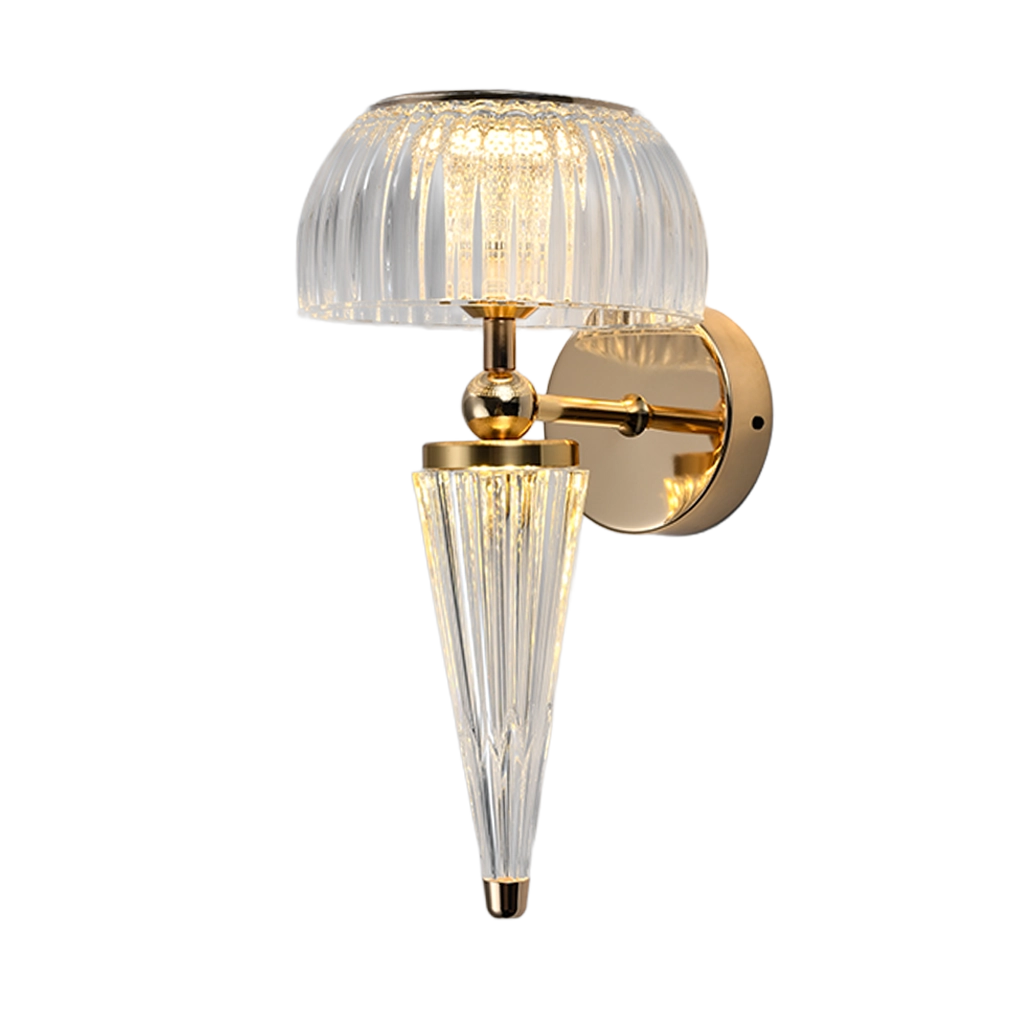 Aurex Dome is defined by its controlled curvature. The domed acrylic surface redistributes light outward from a central point, reducing edge brightness and visual hotspots. This creates a calm, evenly illuminated presence that feels stable rather than expressive. The fixture avoids surface texture or pattern, relying entirely on form to manage light behaviour. The gold-toned frame remains understated, ensuring the dome reads as a single, resolved volume integrated into the wall surface.
