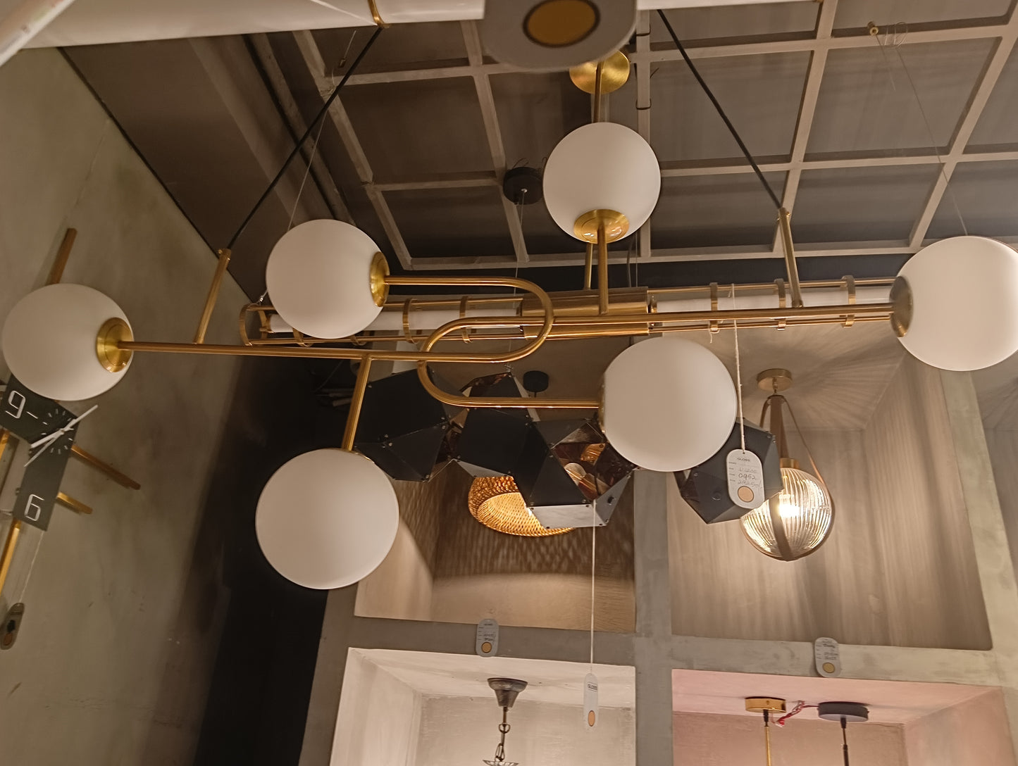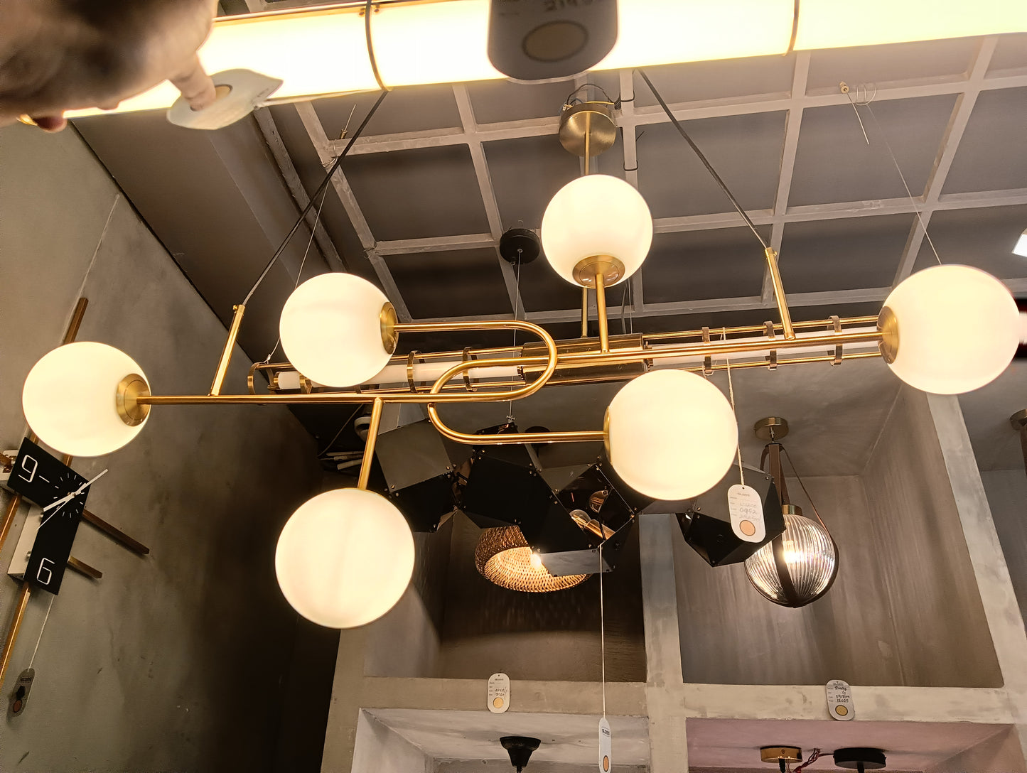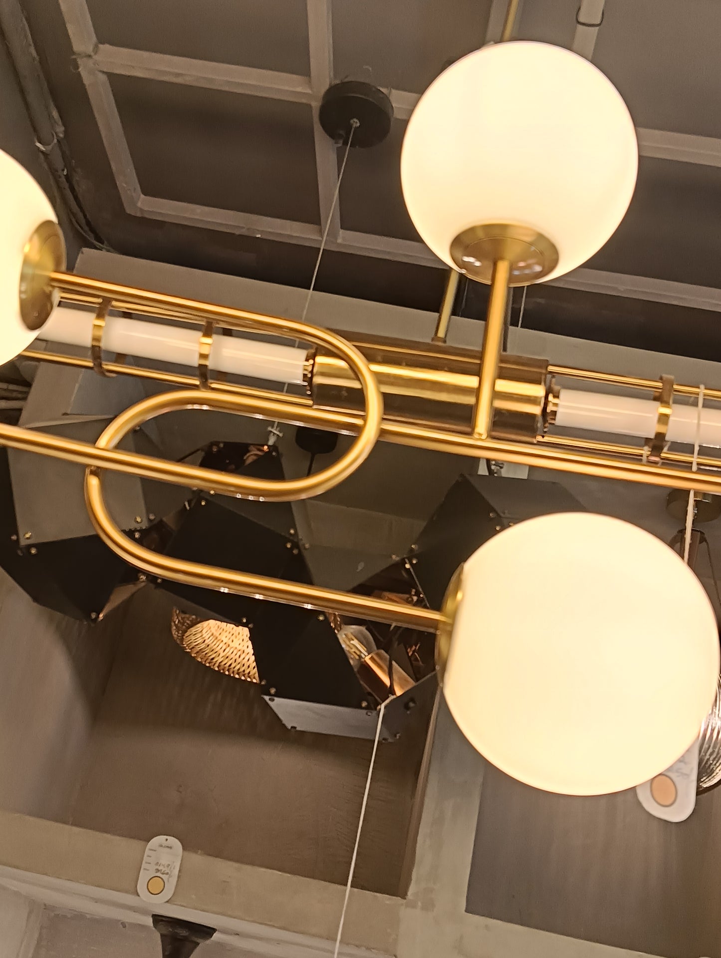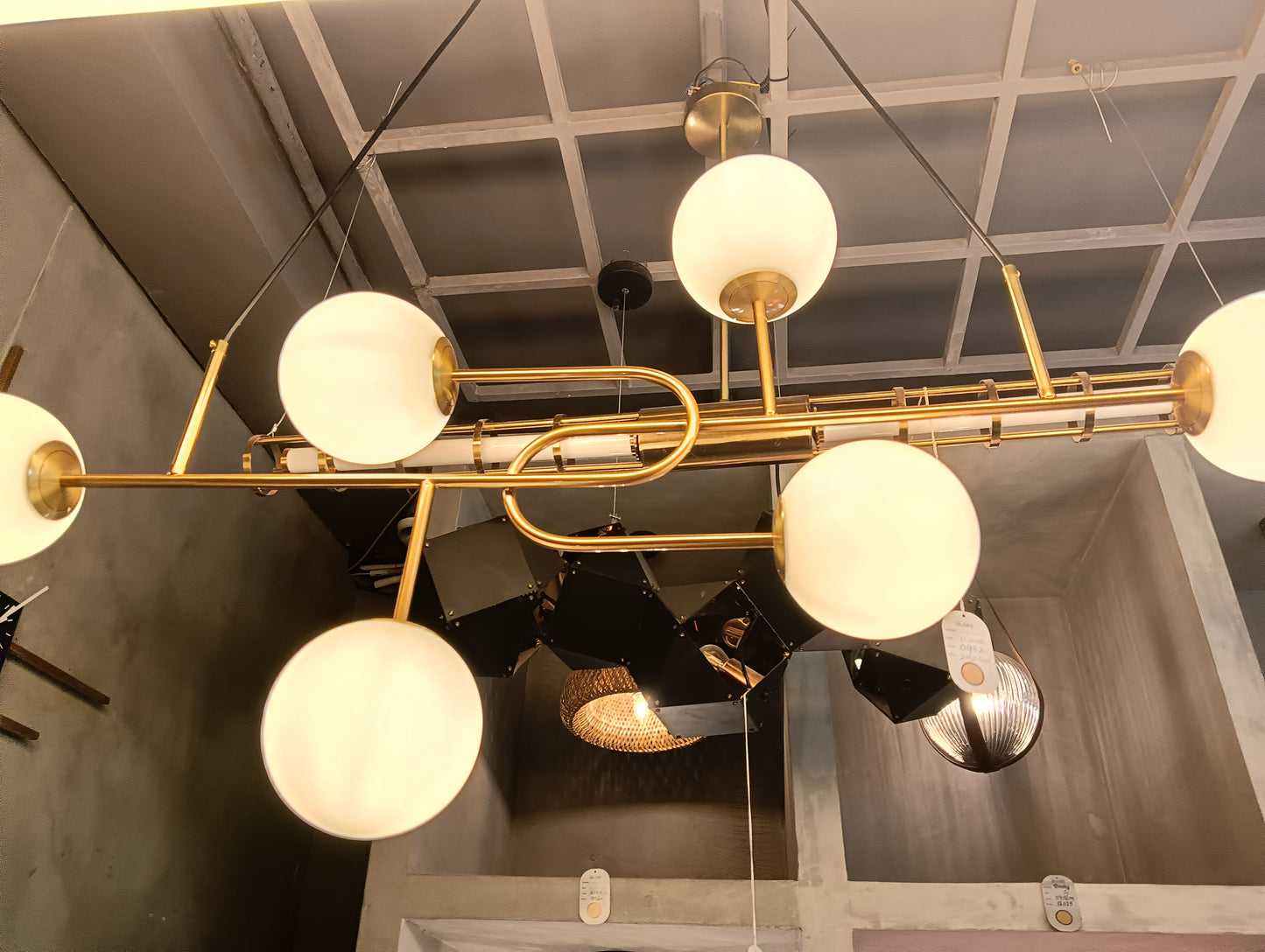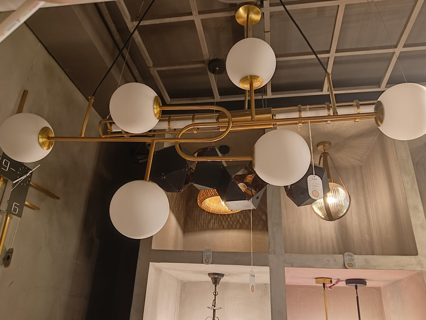 Combines vintage charm with modern appeal. Crafted from metal and glass with an antique brass finish, it features six glowing spheres (4” each) suspended across a W1200 × H600 mm frame. Designed for E14 bulbs, it casts a warm, elegant glow that enhances dining rooms, lounges, and living spaces. Its timeless brass tones and glass spheres bring sophistication and character to contemporary and classic interiors alike.