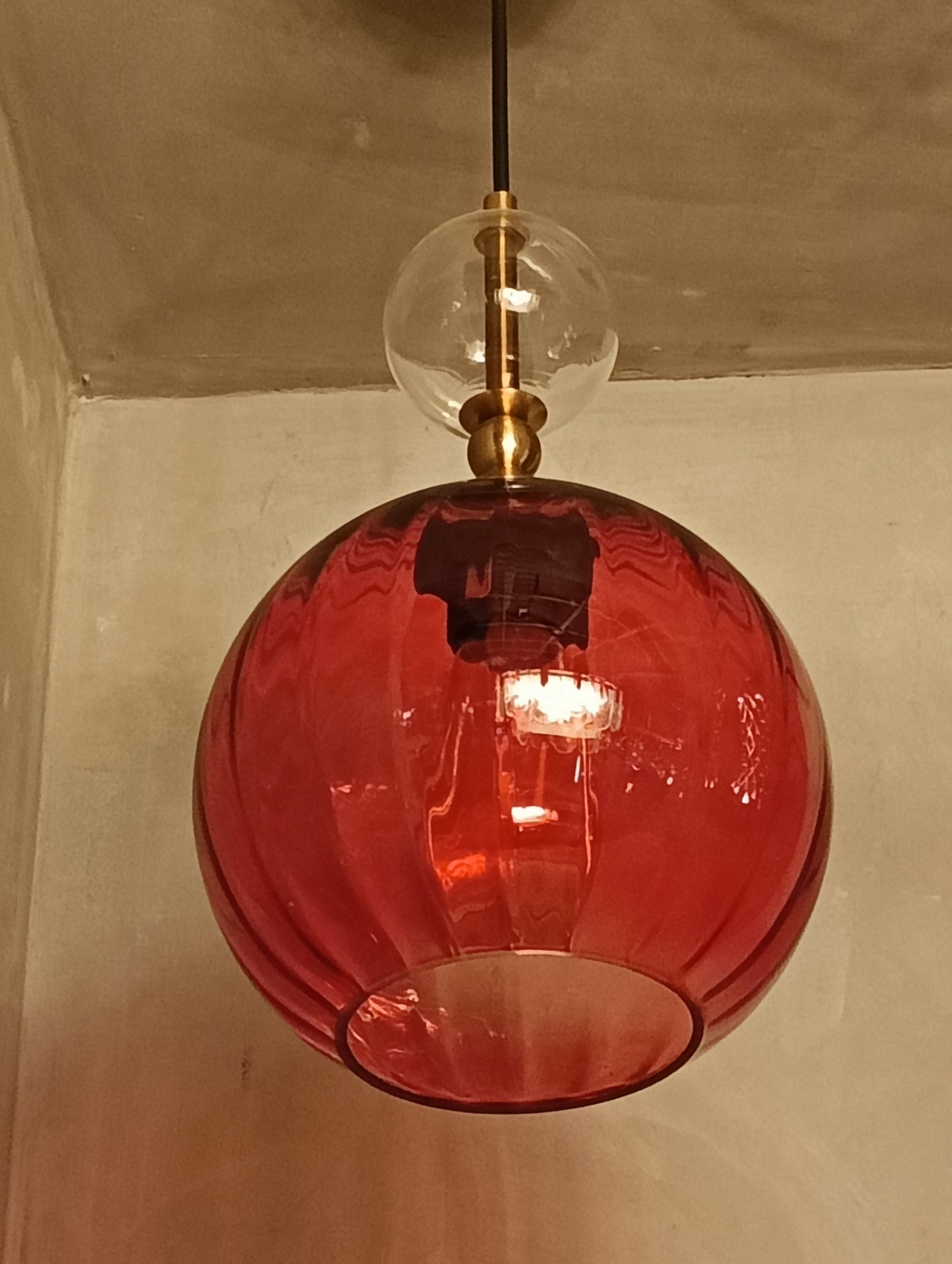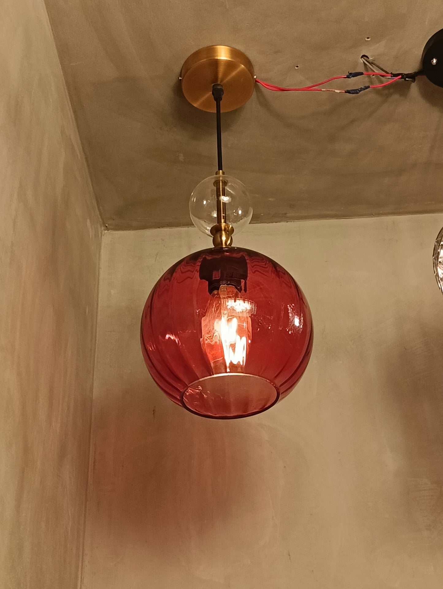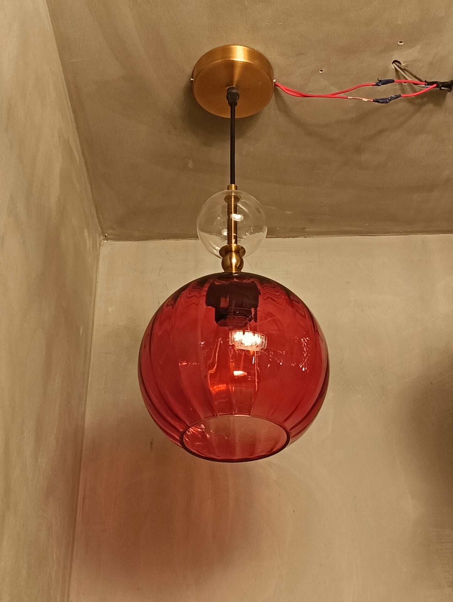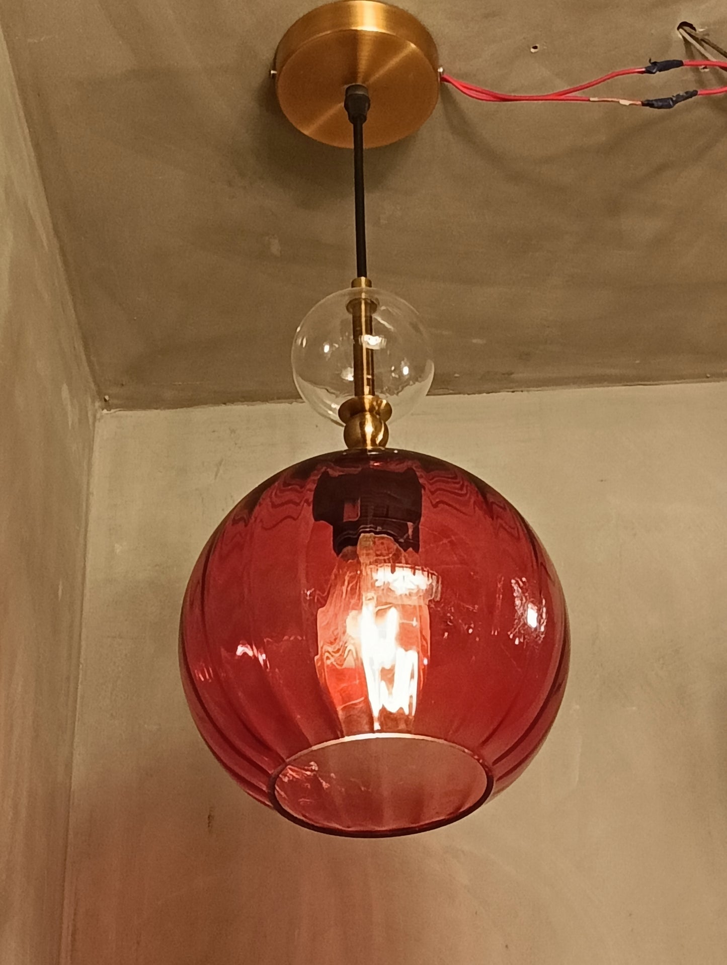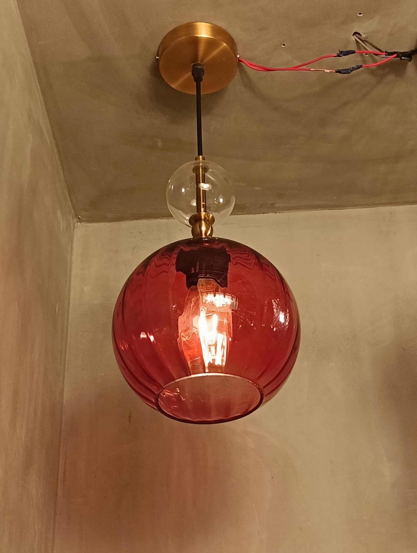 The Crimson Glow Pendant Light is a chic blend of artistry and illumination. Designed with a bold red and transparent glass shade, it creates a striking focal point in any room. Measuring D200 mm and paired with a durable metal frame, it accommodates E27 bulbs (warm or cool white, purchased separately) to suit your mood. Ideal for dining areas, cafes, and modern interiors, this pendant light adds a vibrant touch of elegance and charm.