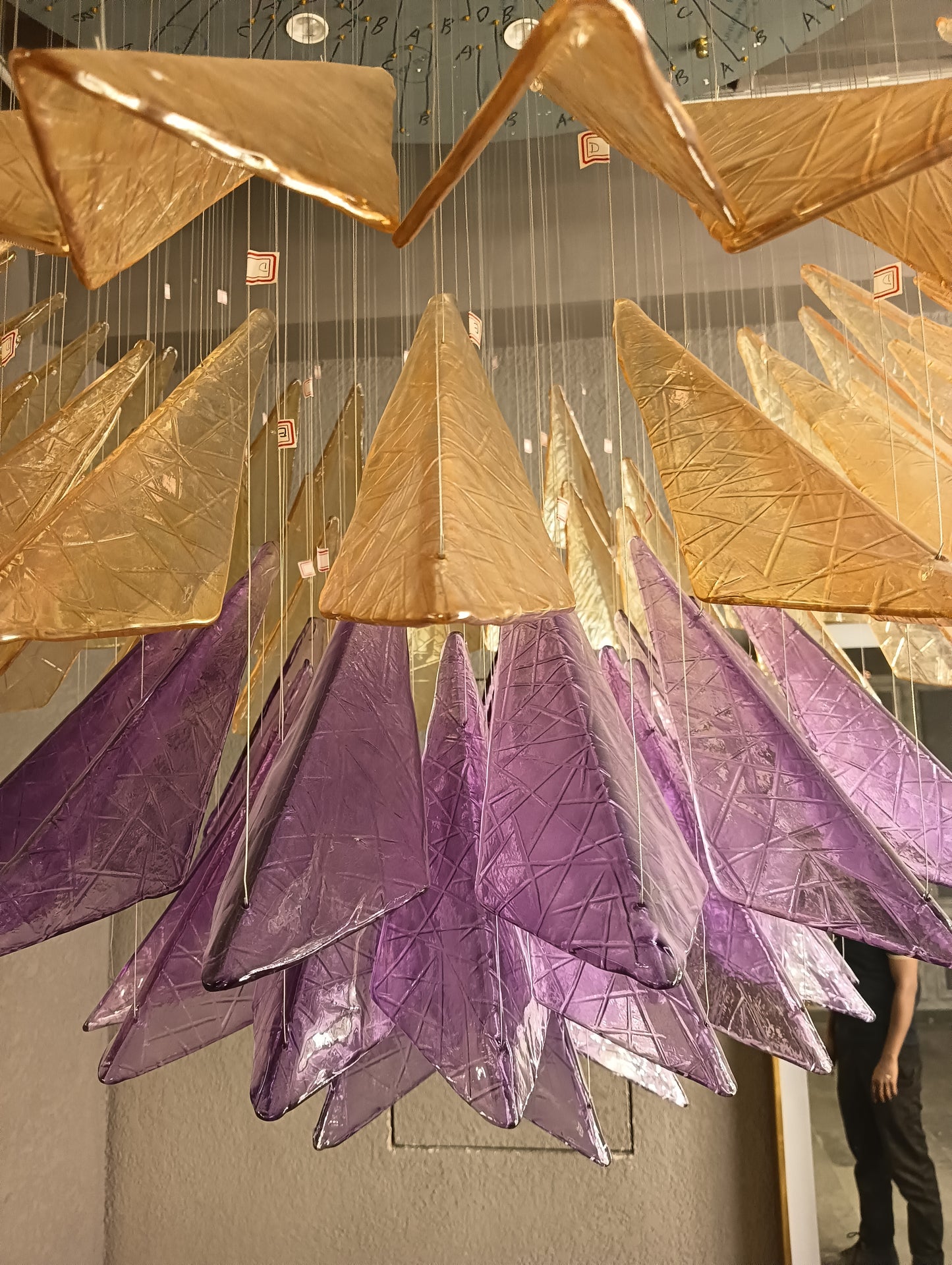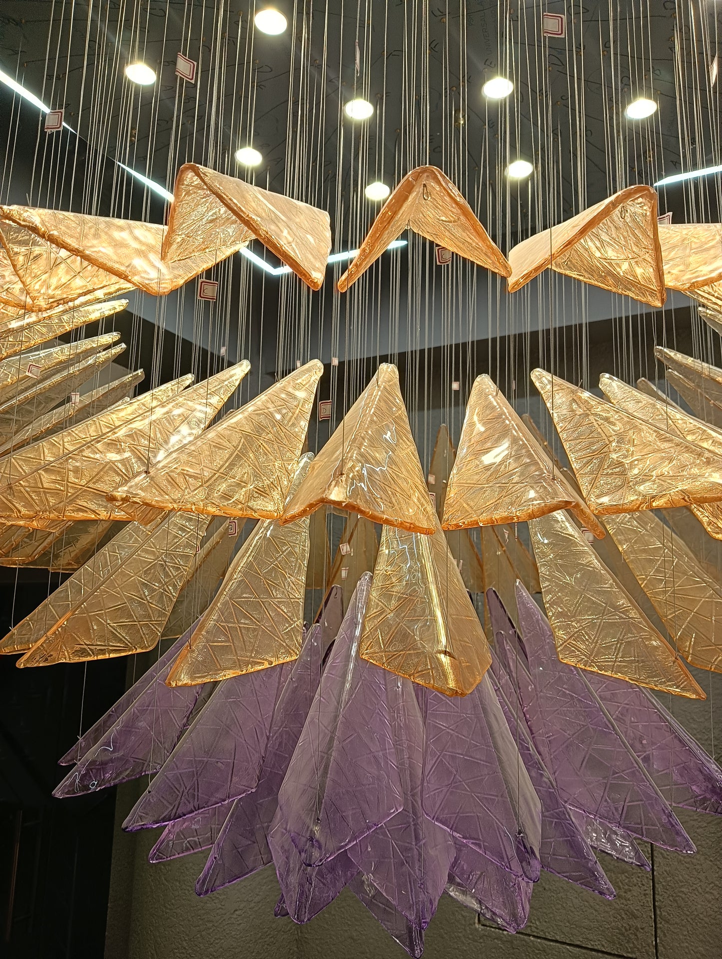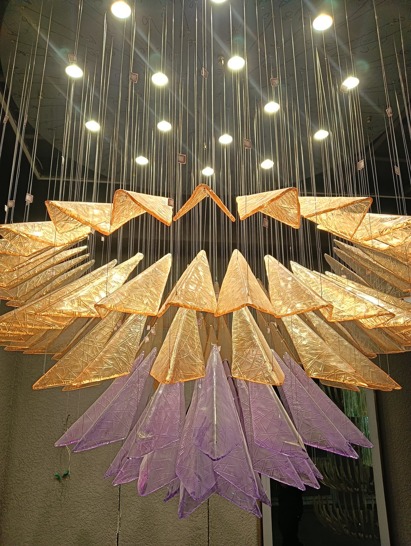 Where light ascends with grace the Opaline Crest by Gloss redefines grandeur. Its gold base and flowing purple-amber glass create a poetic dance of shimmer and shade, perfect for double-height spaces. The warm white glow radiates serenity, turning architecture into art. Every detail speaks of craftsmanship, balance, and timeless splendor a chandelier that doesn’t just illuminate, it inspires.