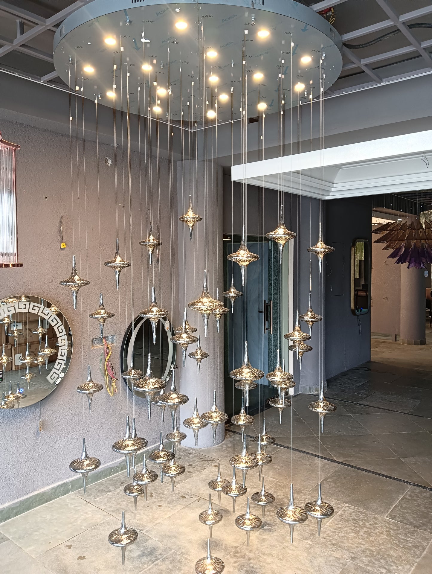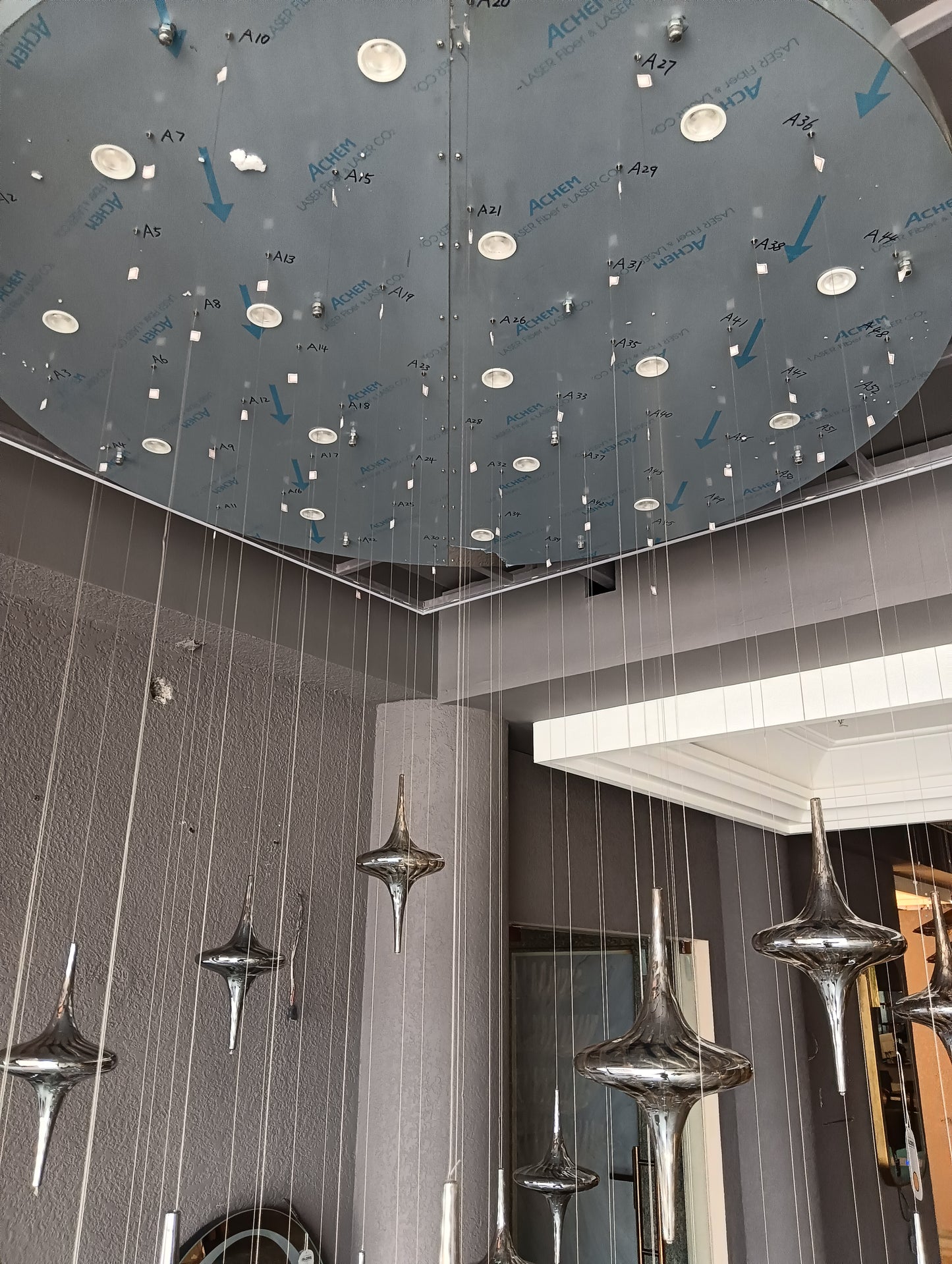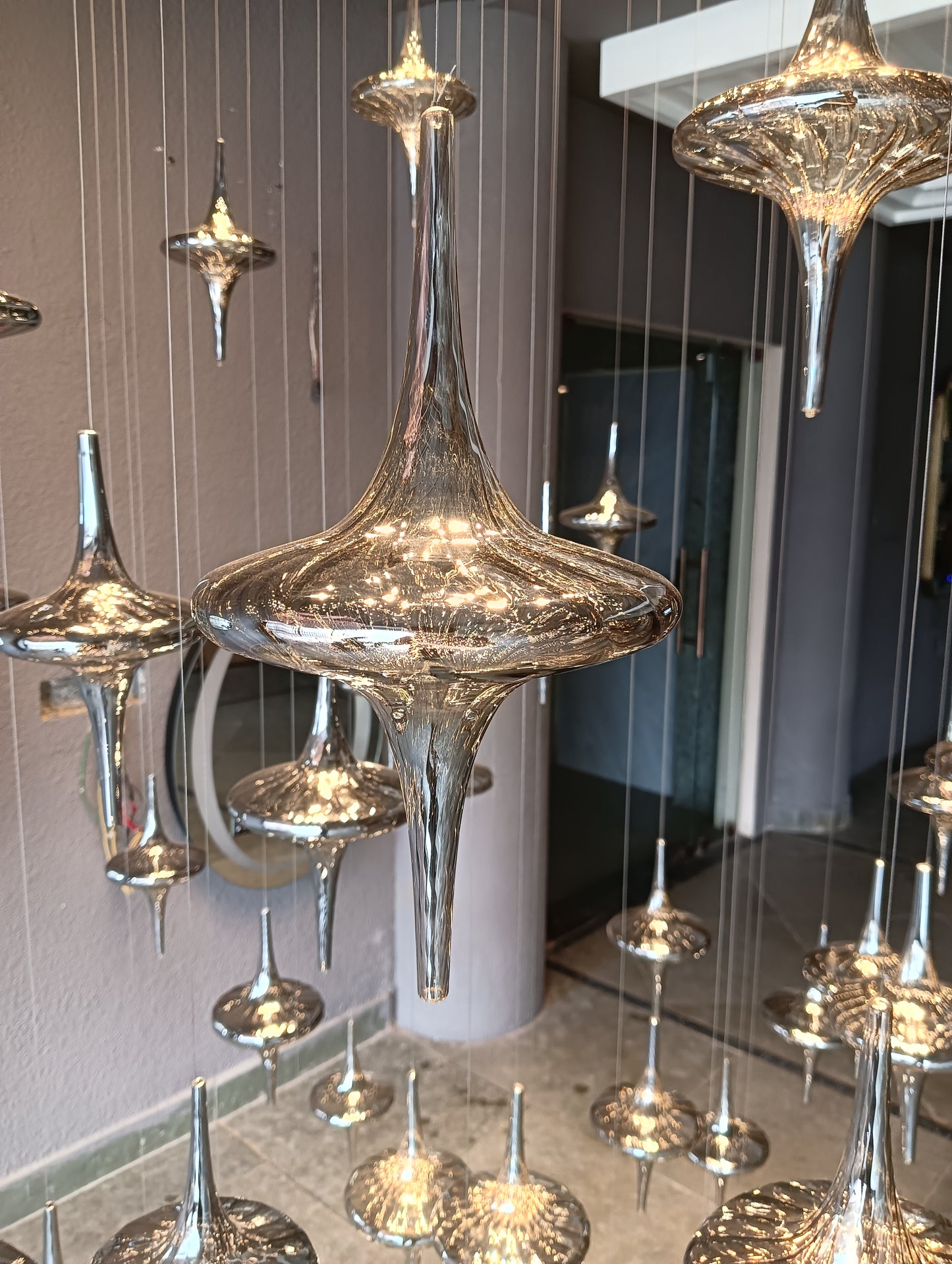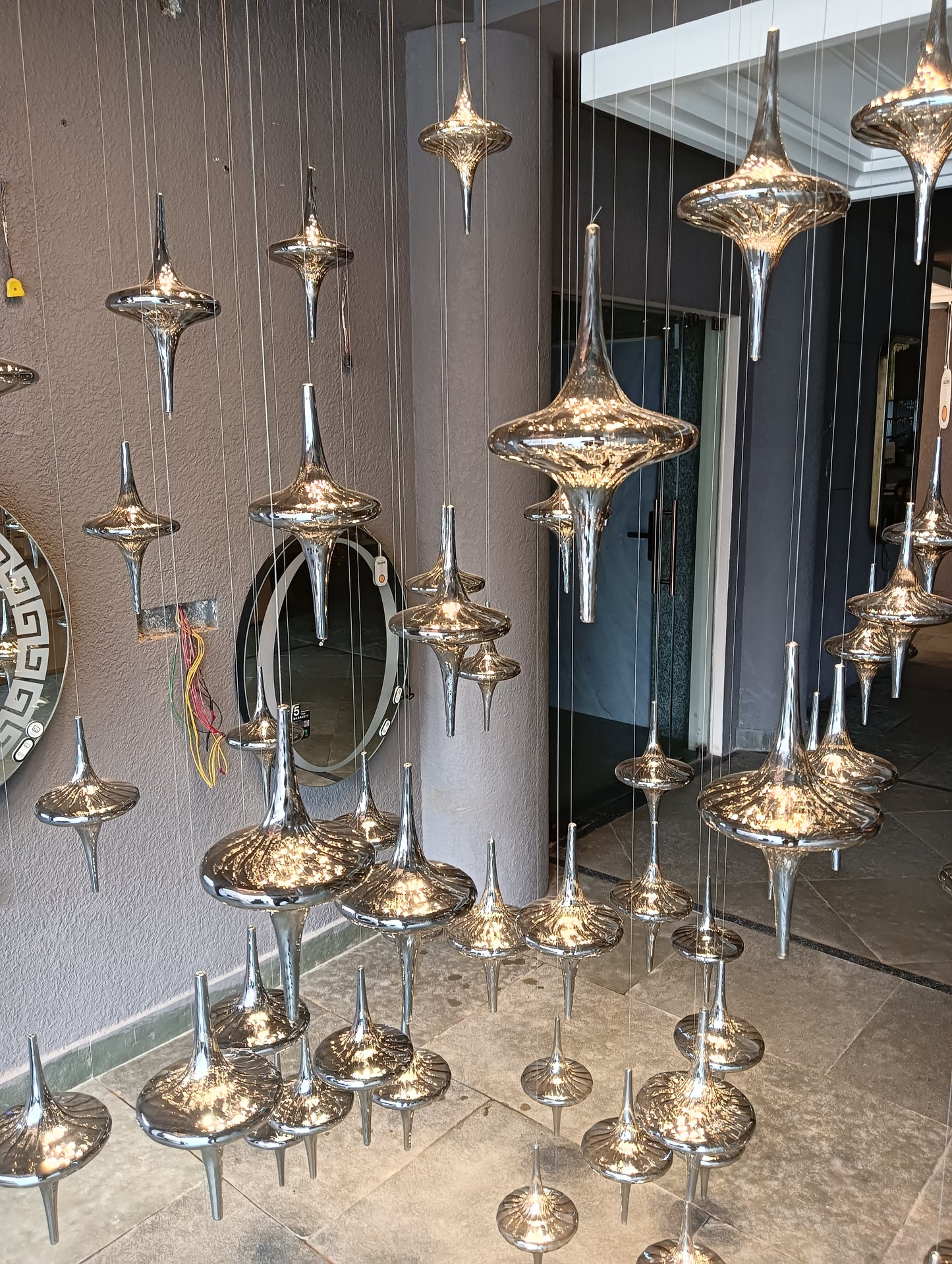 Striking fusion of elegance and modern artistry. Crafted with iron and light smoke glass, its bold smoke finish adds depth and drama to interiors. Measuring D1500 × H2800 mm, it is designed for grand double-height spaces. Featuring GU10 bulb holders, it casts a warm white glow, creating an inviting ambiance. Ideal for villas, hotel lobbies, or luxury residences, Smoky Aura transforms interiors into sophisticated masterpieces.