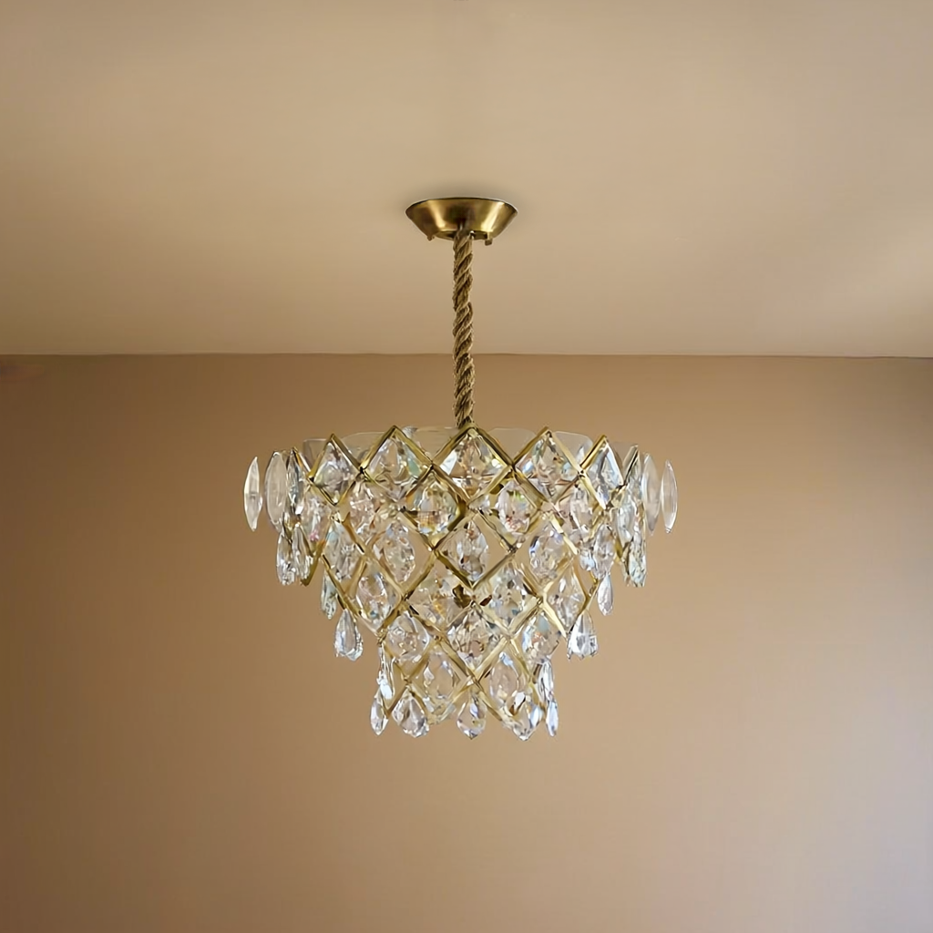 Picture the scene: having a dinner party under the warm light of the Inlay Crystal Chandelier (581963), with the room filled with warmth and sophistication. This chandelier sets the mood, whether it's an intimate night or a party atmosphere. The luxurious crystals and soft lighting create a warm ambiance that your guests will envy. The elegance of this chandelier not only adds beauty to your room visually but also makes every moment spent in its light shine brighter.