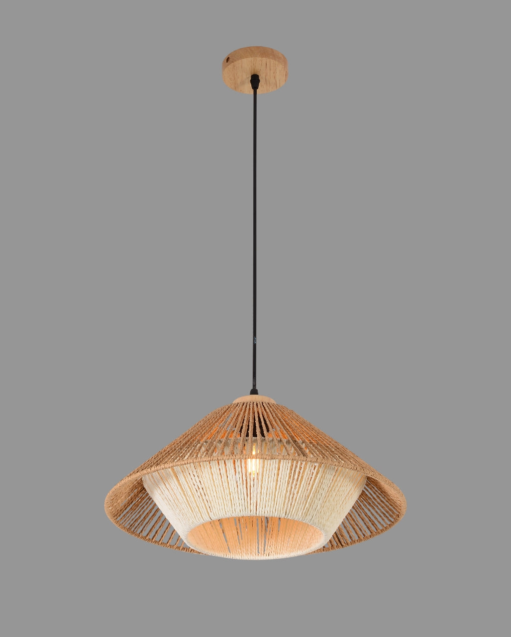 Jute Weave is shaped by material permeability rather than enclosure. Interlaced jute fibres allow light to pass through irregular intervals, producing a glow that feels textured and atmospheric rather than uniform. Illumination is softened through filtration, not diffusion, allowing shadows and highlights to coexist naturally. The pendant reads as a material-led form where light responds directly to fibre density, making it well suited for dining areas and relaxed living spaces that favour warmth over precision.