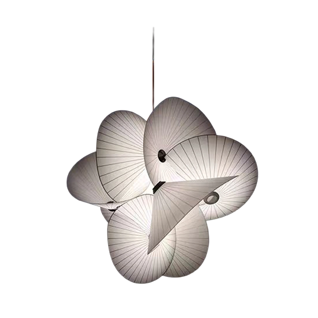 This fabric chandelier is shaped as a cylindrical drum wrapped in linen, using material diffusion to soften illumination. Light passes through the woven surface gradually, lowering contrast and reducing glare. The drum form provides visual stability while maintaining restraint. Linen texture introduces warmth without ornament, allowing light to remain the primary focus. Illumination reads as continuous and ambient rather than directional. Within fabric chandeliers, this design is distinguished by its cylindrical enclosure and emphasis on uniform diffusion.