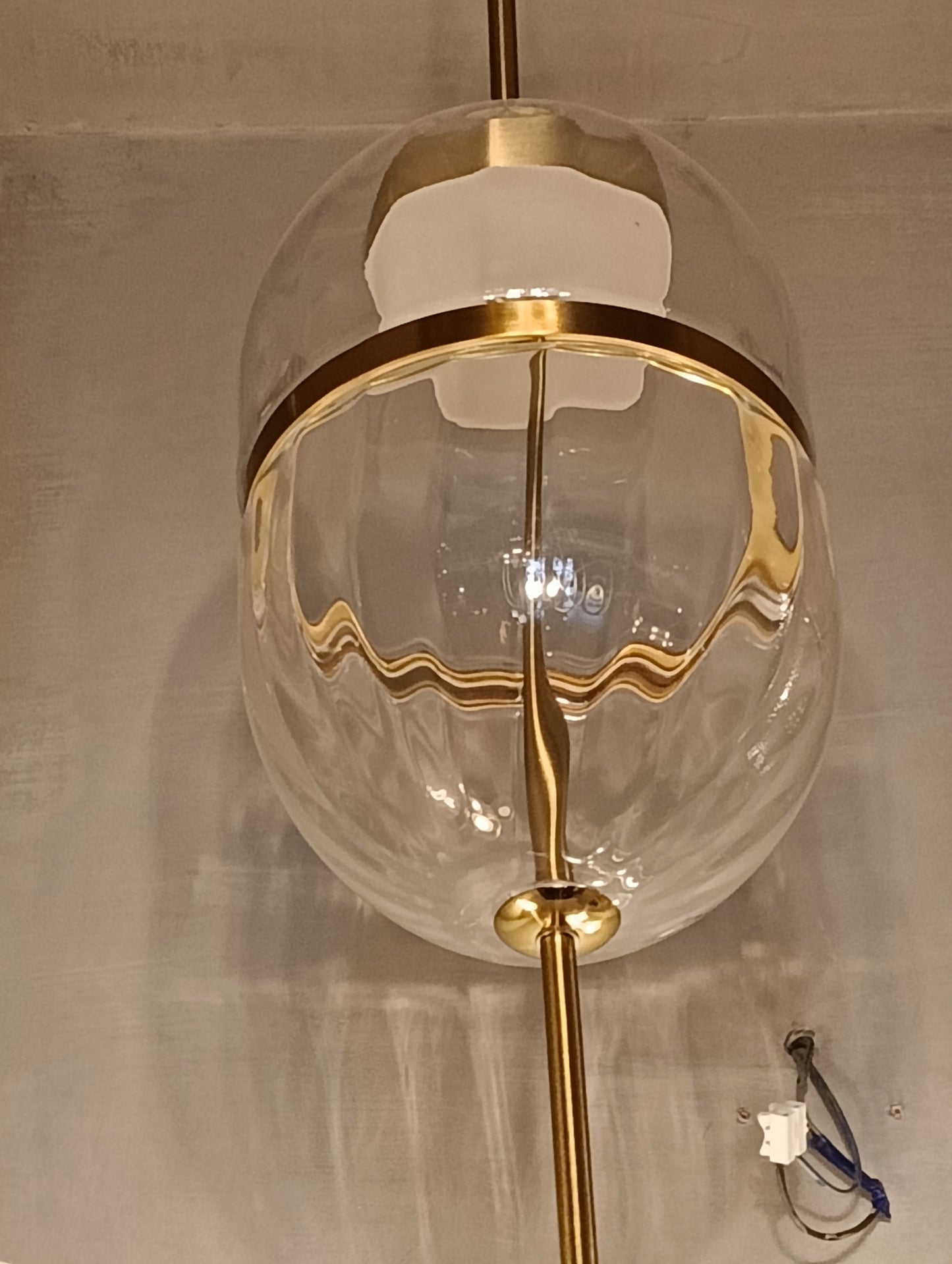 Crafted by Lumeil is a refined fixture that brings minimalism and warmth together. Designed as a slender golden brass line with a delicate glass element at the center, it creates a modern architectural statement. Measuring Ø240 × H1200 mm, this pendant is ideal for dining tables, kitchen counters, hallways, and bar areas. Equipped with a 5W in-built LED, it emits a soft warm white glow that enhances both residential and hospitality interiors. Use it as a single accent light or in clusters at varying heights for a dramatic effect.