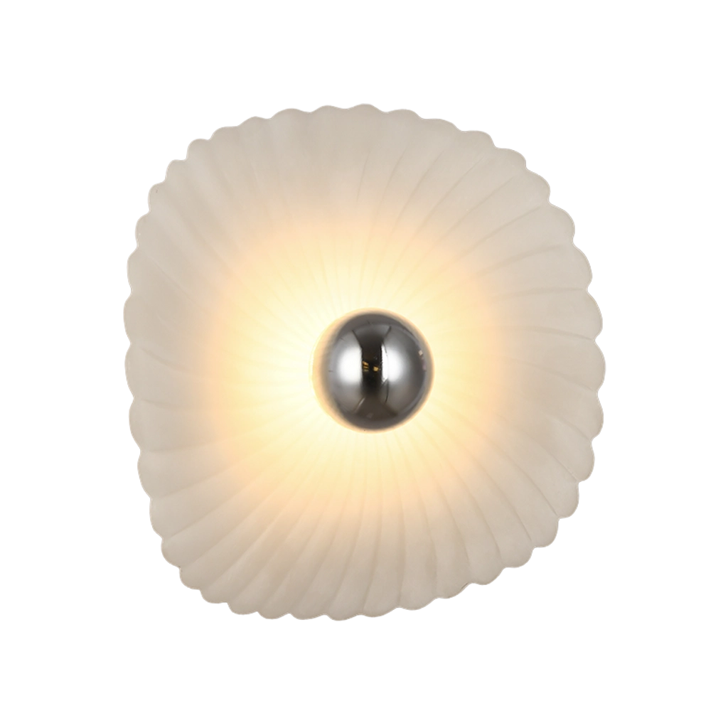 This wall lamp uses white glass to diffuse illumination evenly across the wall plane. Light behaviour remains soft and controlled, avoiding glare. The white surface reflects light gently, supporting ambient balance. The form is restrained and architectural, allowing the fixture to recede visually. Within the Crest glass family, this version is distinguished by its lightest visual presence.